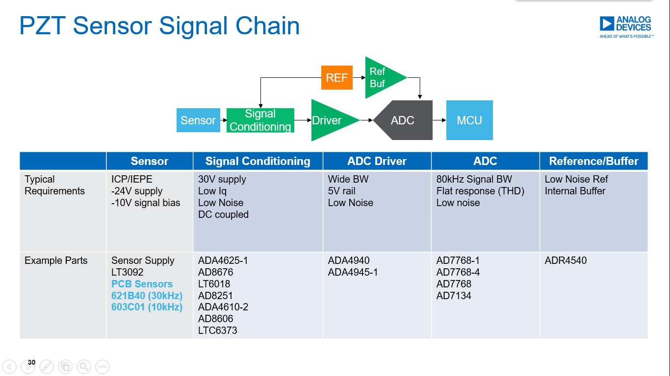 當然,如果想繼續(xù)選用PZT傳感器,ADI也可以提供后續(xù)調(diào)理和數(shù)據(jù)采樣方案: