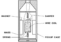 當(dāng)線圈中的導(dǎo)線穿過磁場(chǎng)時(shí),會(huì)在線圈的兩端導(dǎo)線之間感應(yīng)出電壓。感應(yīng)電壓是由能量從磁體的磁通場(chǎng)到線圈的傳遞引起的。當(dāng)線圈因振動(dòng)而被迫通過磁場(chǎng)時(shí),會(huì)產(chǎn)生代表振動(dòng)的電壓信號(hào)。