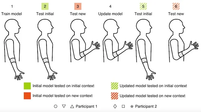 具有集成AI的可穿戴傳感器,可進(jìn)行假肢控制。圖片由 加州大學(xué)伯克利分校提供