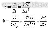 其中d-扭桿直徑,有效長(zhǎng)度,Ip慣性矩,Zi抗扭截面系數(shù)