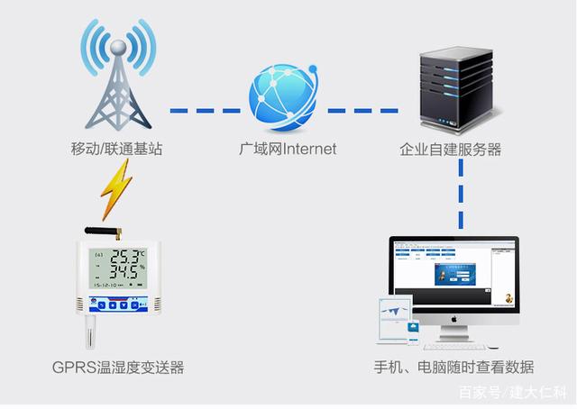 基于GPRS傳輸的溫濕度傳感器,只需一張移動或聯(lián)通的SIM卡,就可以通過網絡基站將采集的溫濕度數據上傳到服務器,GPRS通訊月流量小于30M。