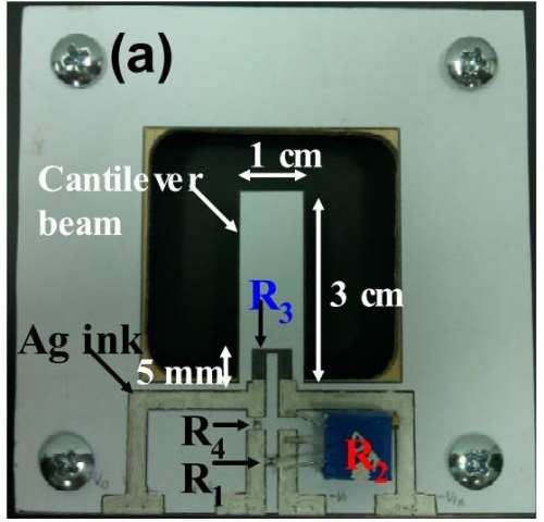 將傳感器畫在放在電子秤上的紙上,以便為每個鉛筆畫出的傳感器測量并保持一致的畫力。然后將圖紙粘貼在印刷電路板(PCB)板上,并在每個PCB板上安裝一個應(yīng)變儀。然后,Kang使用四點彎曲技術(shù)將應(yīng)力循環(huán)施加到傳感器上,并通過電路在施加的應(yīng)力下測量傳感器的電壓變化。