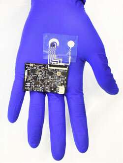 新的可穿戴設(shè)備由可粘貼到用戶皮膚上的粘貼片組成,其中包含刺激出汗的系統(tǒng)和旨在快速檢測出汗液中維生素C水平的電極傳感器。為此,該設(shè)備包括含有抗壞血酸氧化酶的柔性電極。當(dāng)存在維生素C時,酶會將其轉(zhuǎn)化為脫氫抗壞血酸,所產(chǎn)生的氧氣消耗會產(chǎn)生由設(shè)備測量的電流。