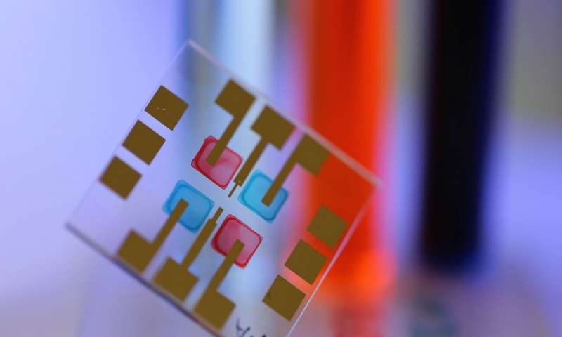 通過使用半導(dǎo)體墨水進行噴墨打印而制成的顏色選擇有機光傳感器。圖片提供:KIT的Noah Strobel
