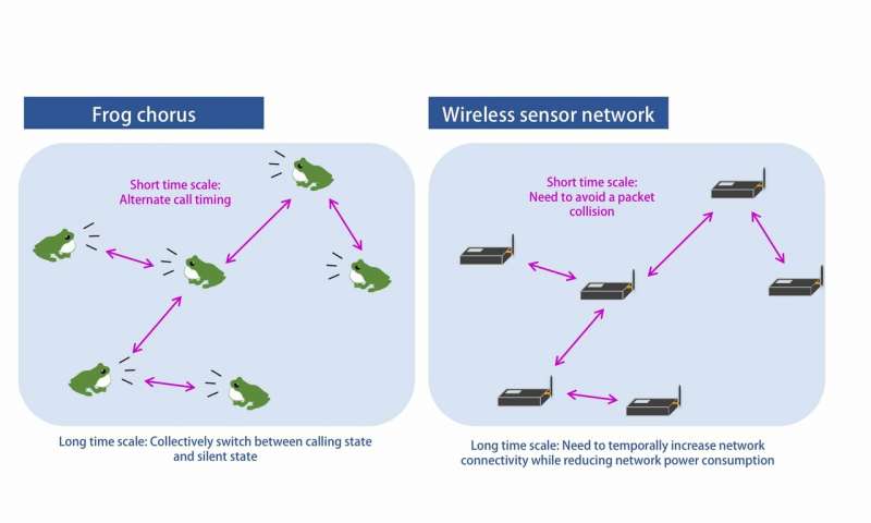 該研究的合著者大知小南解釋說:“我們發(fā)現(xiàn)相鄰的青蛙避免了時(shí)間上的重疊,這為清晰地聽到個(gè)人聲音提供了路徑! “以同樣的方式,傳感器網(wǎng)絡(luò)中的相鄰節(jié)點(diǎn)需要改變數(shù)據(jù)傳輸?shù)臅r(shí)序,以使數(shù)據(jù)包不會(huì)發(fā)生沖突!