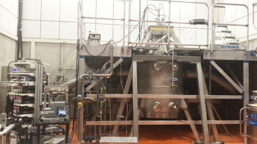 圖片:Paragraf – 圖像顯示(右側(cè))用于測試 GHS-C 的 37 T 磁鐵,其中插入了低溫恒溫器和可變溫度以及測量電子設(shè)備和氣體處理系統(tǒng)(左側(cè))