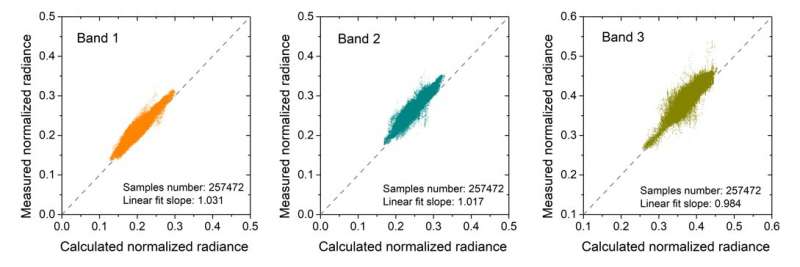 研究人員檢測了傳感器的在軌輻射靈敏度變化,并評估了它們的整體輻射檢測性能。他們還驗證了交叉輻射校準方案,將POSP的高精度板載校準系數(shù)轉(zhuǎn)移到DPC的寬視場。