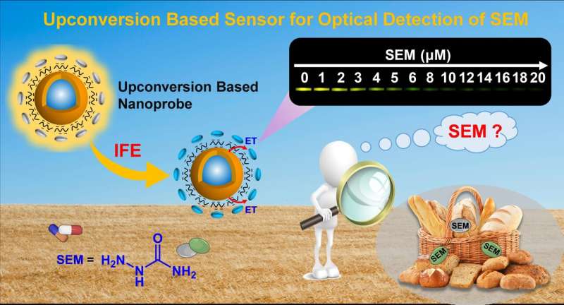 圖 1 上轉(zhuǎn)換發(fā)光納米探針檢測食品中氨基脲的示意圖。朱嘉文