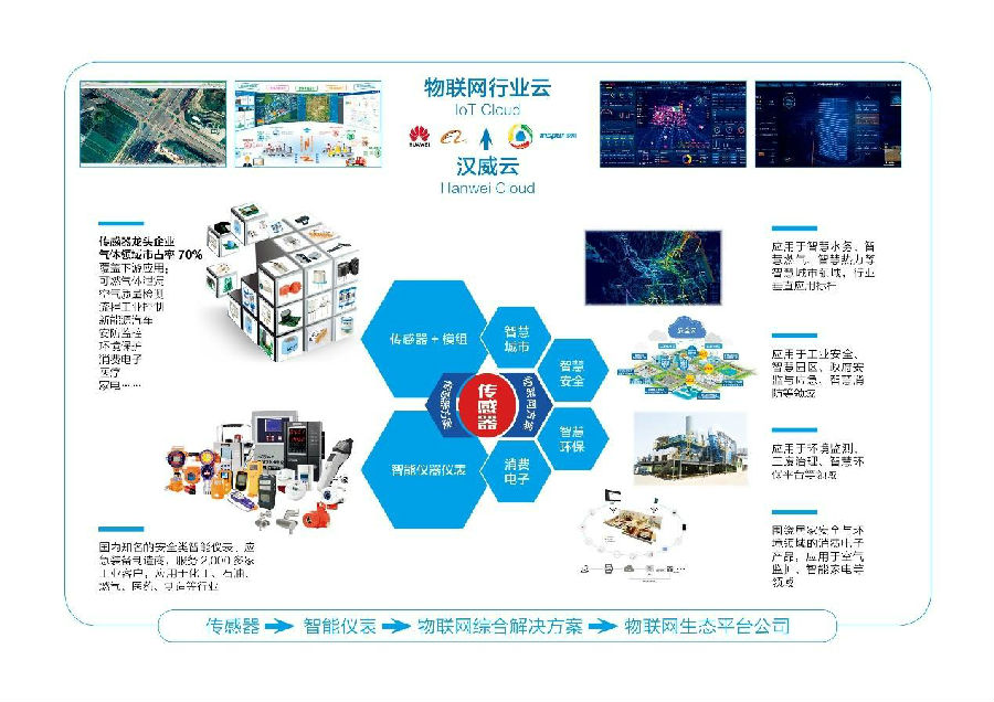 多年以來,漢威科技的技術(shù)骨干們從將國外的先進技術(shù)進行拆解、學習的基礎(chǔ)上進行創(chuàng)新、調(diào)整出發(fā),到從單一傳感器到全品類傳感器的獨立開發(fā)與制造,再到將產(chǎn)業(yè)鏈延長至下游,實現(xiàn)氣體檢測儀器儀表的產(chǎn)品全鏈路布局。漢威科技又把握住市場機遇與時代脈搏,入局發(fā)展物聯(lián)網(wǎng),目前已擁有城市生命線監(jiān)測預(yù)警平臺、智慧安全、智慧環(huán)保、智慧燃氣、智慧水務(wù)、智慧消防、居家智能與健康等一系列成熟的物聯(lián)網(wǎng)解決方案,廣泛應(yīng)用于工業(yè)安全、環(huán)境監(jiān)測、燃氣、供排水、消防、交通、熱力、危化品監(jiān)管、綜合管廊、居家健康等各個領(lǐng)域。