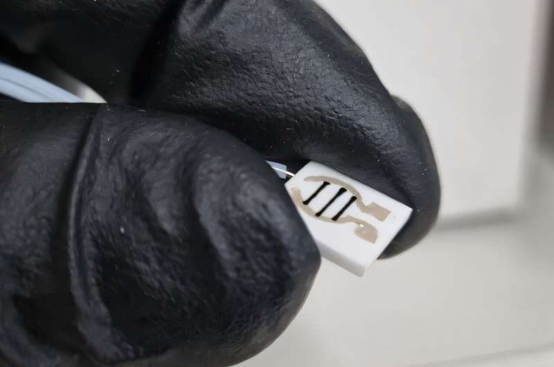 這種使用 3D 打印導(dǎo)電油墨制成的氣體傳感器,可幫助快速輕松地診斷甲醇中毒。圖片來源:卡姆魯爾・哈桑