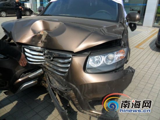 據(jù)車主王先生向南海網(wǎng)記者反映,這輛韓國現(xiàn)代越野車是他去年4月份在海南韓現(xiàn)汽車銷售公司購買的,車身價就達(dá)26萬元。本月15日,王先生在?谑旋埨ツ下否{車時為了避讓電動車而重重撞上了綠化帶的一株椰子樹。