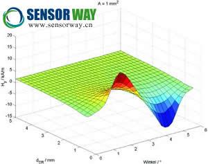 要開發(fā)傳感器系統(tǒng),首先必須對預(yù)期的磁輸入信號有一個總體了解。首先要了解編碼器輪和傳感器頭上永磁體的標(biāo)準(zhǔn)規(guī)格,以及預(yù)期尺寸和公差。通過 ANSYS 方法進行 FEM 仿真可確定磁場。這里就有對編碼器輪、傳感器元件和磁體進行建模的問題(圖 5)。然后便可根據(jù)傳感器元件和編碼器輪之間的距離,確定與之呈函數(shù)關(guān)系的磁場強度。圖 6 是傳感器橋上的磁輸入信號與距離呈函數(shù)關(guān)系的三維圖示。很容易看出輸入信號呈正弦曲線,信號振幅隨距離增加而明顯減小。除了距離之外,位置偏離也會導(dǎo)致振幅減小。例如,如果傳感器頭不在編碼器輪前面的中心位置,那么信號振幅也會減小。根據(jù) FEM仿真方法,這樣也可將機械規(guī)范轉(zhuǎn)化成預(yù)期磁變量。與氣隙變化不同,傾斜會導(dǎo)致偏移,這同樣會影響系統(tǒng)的正常運轉(zhuǎn)。FEM 仿真也可以預(yù)估其造成的影響(圖 7),而且結(jié)果可直接轉(zhuǎn)化為可容許的位置公差。