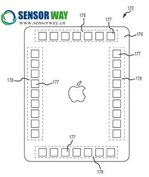 目前平板電腦的操作大都使用前面的觸摸屏完成,而其背面只起保護(hù)作用。蘋果似乎想改變這種狀況。在iPad平板電腦的背面增加傳感器裝置,可以增加其控制方式。專利文件中, 這些傳感器沿著平板電腦背面邊緣排成一圈。