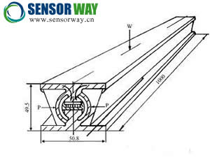 石英晶體敏感元件及壓電石英稱重傳感器在動態(tài)公路車輛稱重中的應(yīng)用主要有兩種方式。一種是利用多個墊圈式壓電石英稱重傳感器組裝成薄形電子輪重、軸重秤或條形稱重板。一種是利用多個石英晶體片和電極板直接安裝在特制的梁式承載器內(nèi),形成專用的壓電石英稱重傳感器,將其埋在公路表面截面為50×50mm的長槽內(nèi),形成動態(tài)公路車輛軸重秤。瑞士Kastler(奇石樂)公司研制的石英晶體動態(tài)稱重傳感器就是這種應(yīng)用的典型代表。它的總體結(jié)構(gòu)如同1m長的工字梁,所不同的是工字梁的腹板為圓形空心截面,實際上其空心是由平行于工字梁上下翼緣的兩個平面形成的矩形通孔,它的結(jié)構(gòu)如圖6所示。