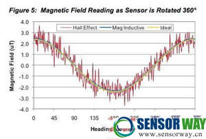 圖5:當(dāng)傳感器旋轉(zhuǎn)360°時的磁場讀數(shù)。