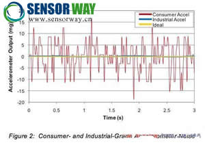 圖2:消費級和工業(yè)級加速度計噪聲。