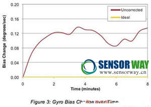 圖3:陀螺儀隨時間的偏移變化。
