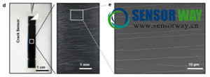 參與這項(xiàng)研究的首爾大學(xué)航空航天工程專業(yè)的Mansoo Choi教授說,“縫隙間的打開和閉合,會(huì)在測量中得到放大,于是這款納米裂縫傳感器,在檢測電阻率方面有著超高的靈敏度。”