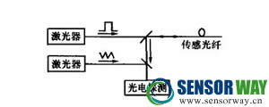3、在電力系統(tǒng)光纜監(jiān)測中的應(yīng)用電力系統(tǒng)光纜種類繁多,加之我國地域廣闊,各地環(huán)境差異很大,所以光纜的環(huán)境也很復(fù)雜,其中溫度和應(yīng)力是影響光纜性能的主要環(huán)境因素。因此,在監(jiān)測光纖斷點的同時也對光纜所處溫度和應(yīng)力情況進行監(jiān)測,可見對光纜的故障預(yù)警及維護意義深遠(yuǎn)。通過測量沿光纖長度方向的布里淵散射光的頻移和強度,可得到光纖的溫度和應(yīng)變信息,且傳感距離較遠(yuǎn),所以有深遠(yuǎn)的工程研究價值;诓祭餃Y光時域反射(BOTDR)的分布式光纖傳感系統(tǒng),采用相干檢測技術(shù),系統(tǒng)原理如圖1所示。
